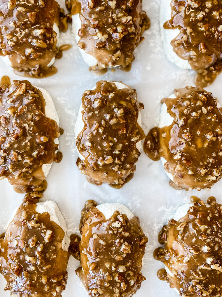 Goat cheese is layered with a decadent pecan caramel filling. Ready to thaw and serve with your favourite crackers.