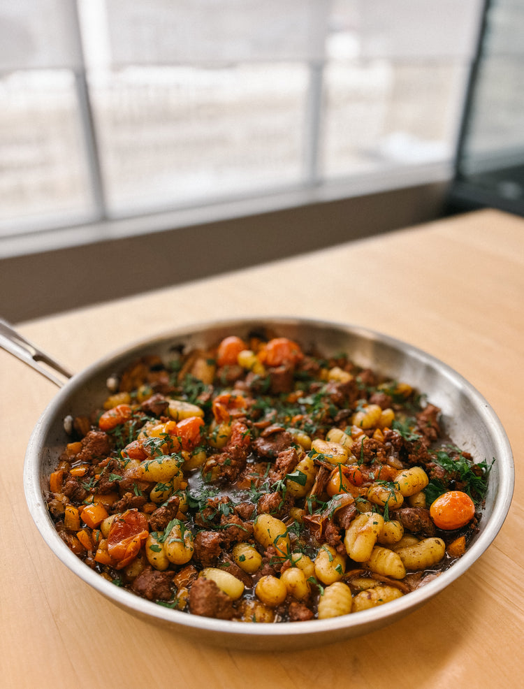 Ingredients: Gnocchi (Contains Wheat), Italian Sausages, Bell Peppers, Red Onion, Cherry Tomatoes, Mushrooms, Dried Basil, Italian Seasoning, Balsamic Vinegar, Chicken Bouillion, Sugar.
