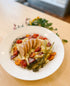 A heartwarming, cozy sheet pan loaded with seasonal vegetables, Italian sausage and savoury bursting flavour of balsamic and herbs. Paired with parmesan tossed penne pasta.