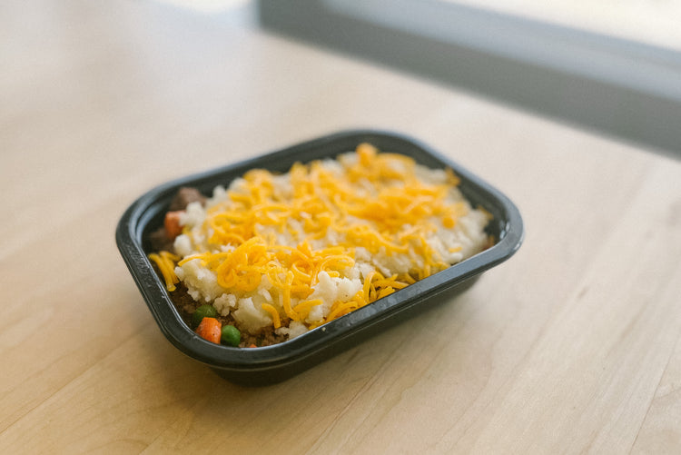 Ground Beef, Potato, Milk, Butter, Cheddar Cheese, Garlic, Onion, Cornstarch, Beef Stock, Peas, Carrots, Gluten Free Worcestershire Sauce, Tomato Paste