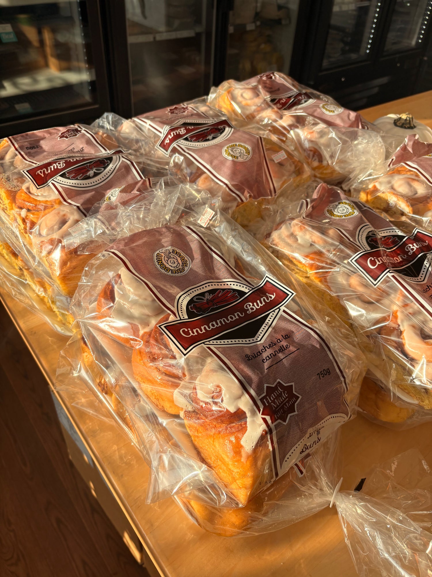 6 large iced cinnamon buns. Made locally in Winnipeg by The Donut House!
