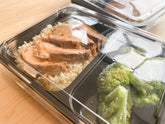 Pork tenderloin is roasted in a rich and savoury peanut sauce, then carved and served overtop of rice. Includes side vegetable.