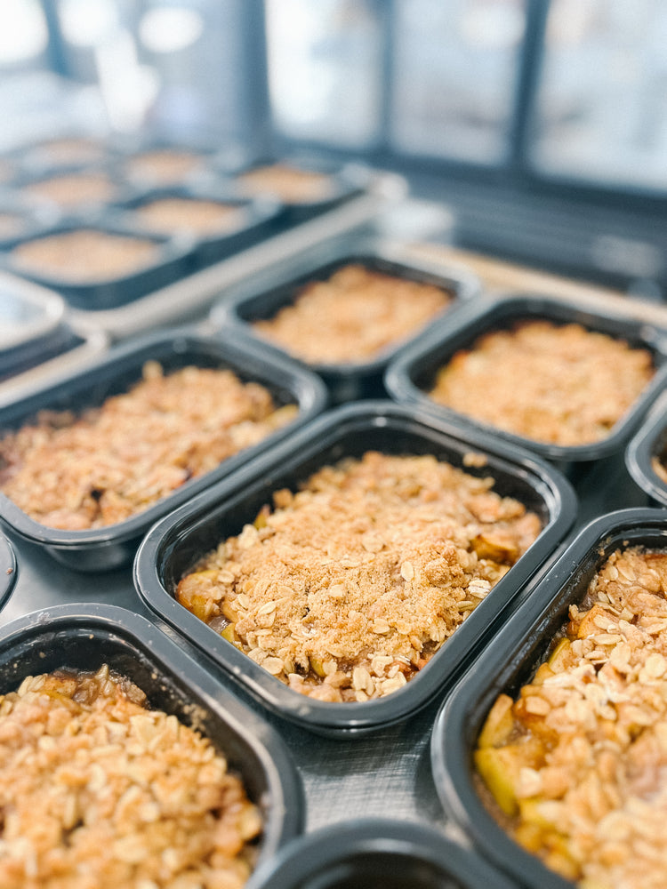 Enjoy a delicious fruit crisp for a perfect, easy dessert. Our from scratch topping is made with real butter, and our apples are hand cut with care.