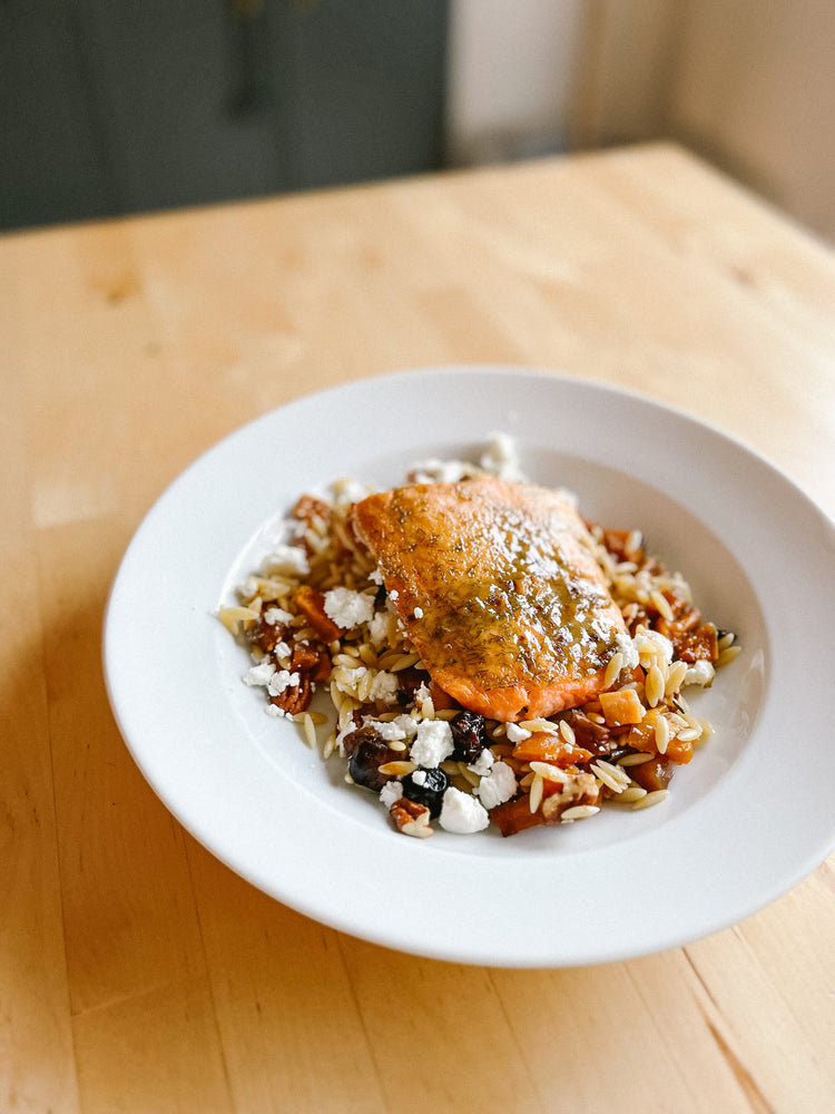 Maple Glazed Salmon with Butternut Squash & Orzo Salad