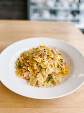 Ingredients: Bowtie Pasta (wheat), Bacon, Cheddar Cheese, Half & Half Cream,