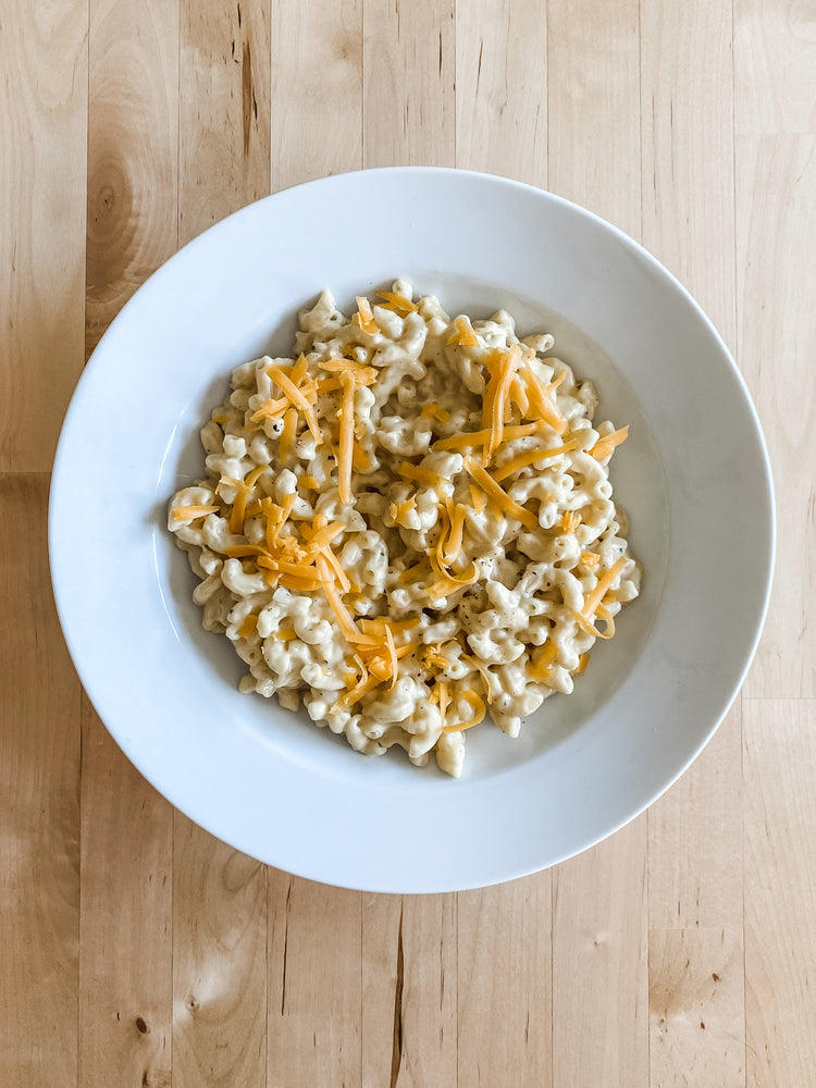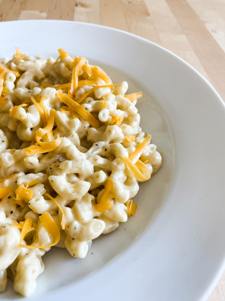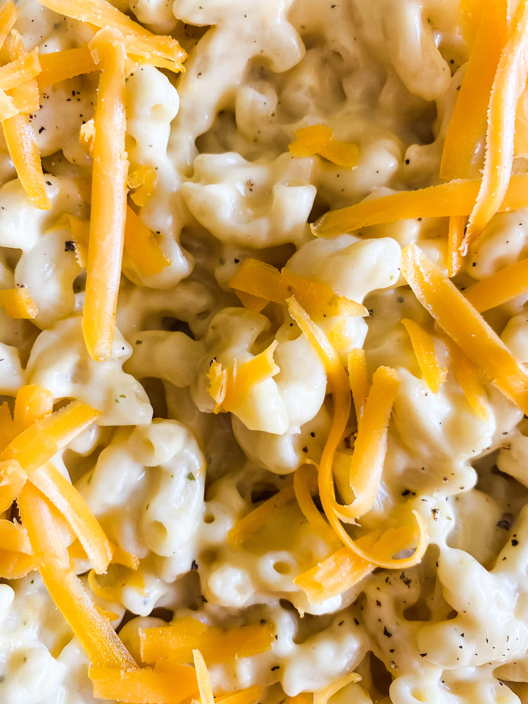 Creamy house made macaroni in a delicious creamy sauce made with three cheeses.