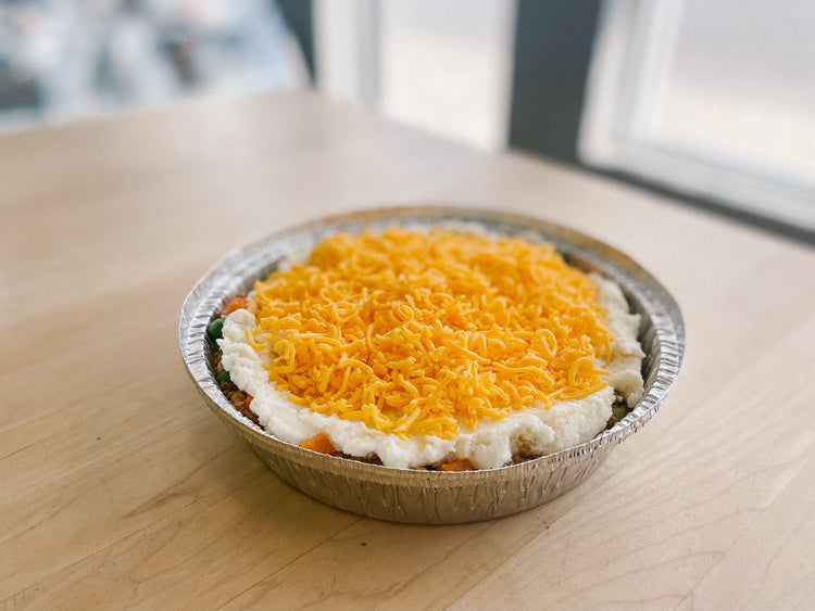 Canadian Ground Beef is simmered in a rich gravy with peas and carrots, then baked with fluffy mashed potatoes and cheese overtop. A comforting choice to make you feel like you're right at home!
