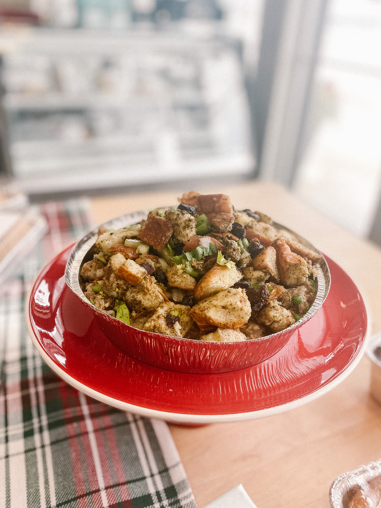 Tender and savoury ground turkey is cooked in a creamy gravy with peas and corn, then topped with cranberry and sage stuffing! Ready to open and bake.