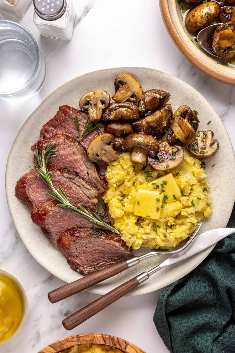 *Fresh* Seared Steak with Garlicky Mushrooms & Mashed Potatoes