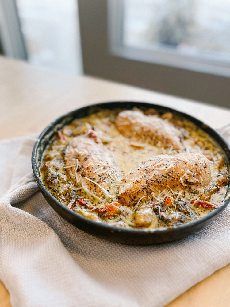 Our take on this crowd pleasing recipe! Boneless chicken breasts are seared and simmered in a gorgeous and creamy sundried tomato cream sauce and tossed with fluffy gnocchi.